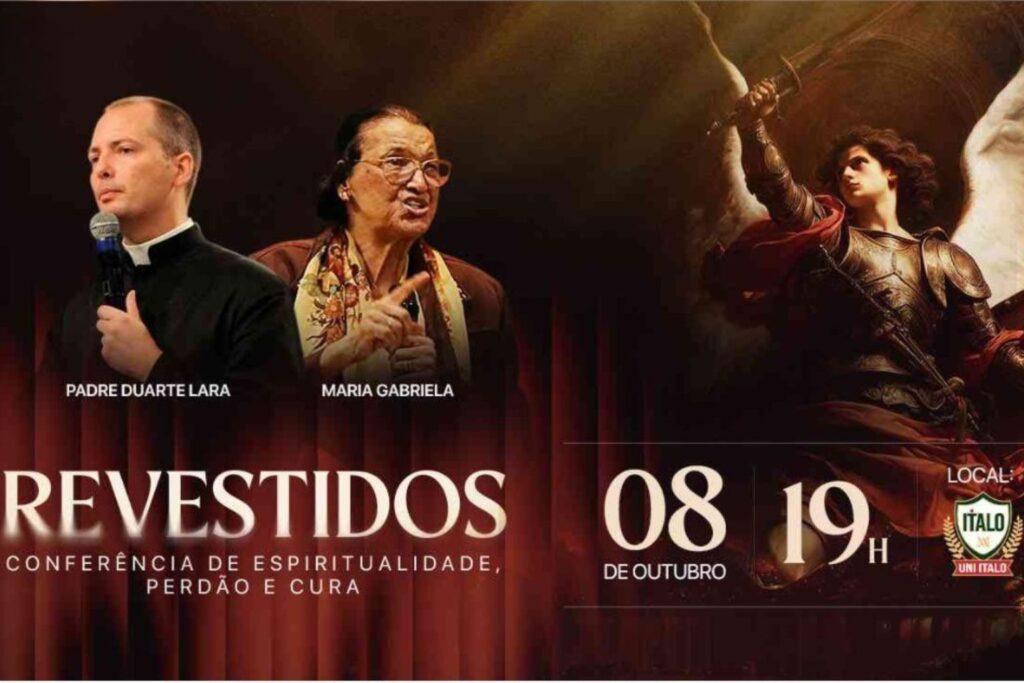 Conferência Internacional de Espiritualidade, Perdão e Cura No dia 08 de outubro, às 19h, São Paulo receberá a Conferência Internacional com espiritualidade de Compbate Espiritual, um encontro único de formação e vivência para todos aqueles que desejam fortalecer a fé e aprender a enfrentar, com firmeza, os desafios espirituais do nosso tempo. O evento contará com a presença de dois grandes nomes: Pe. Duarte Lara – sacerdote e exorcista reconhecido internacionalmente, que já conduziu milhares de fiéis no caminho da libertação e da vida em Cristo. Maria Gabriela – mulher de oração e referência espiritual, a quem até padres como Pe. Marcelo Rossi e Frei Gilson recorrem em busca de conselhos e intercessão. Durante a conferência, serão abordados temas como: Oração e fortalecimento contra as tentações do dia a dia. Como pais e mães podem realizar uma verdadeira “blindagem espiritual” em suas famílias. Armas concretas da fé para enfrentar batalhas espirituais. Orientações práticas e testemunhos de vida que inspiram. Mais do que palestras, será um momento de profunda reflexão e vivência espiritual, oferecendo ferramentas reais para quem deseja caminhar com mais segurança na fé e proteger sua família diante das provações.